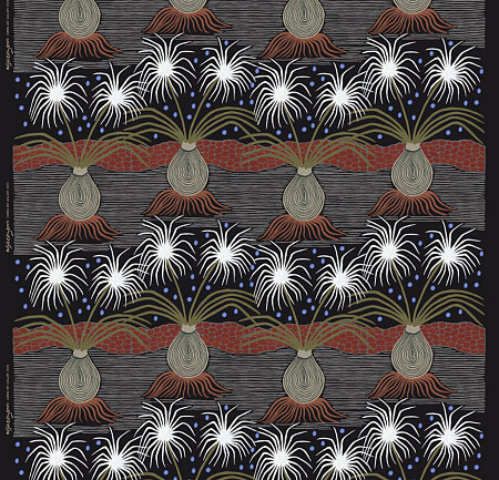 Snow spent her childhood on Magowra Station, on her mother’s Country. Her bush name, Maljah, means lightning and comes from her grandmother’s dreaming. Later in life she learned that her grandfather’s name meant floodwaters. This knowledge inspired her to create artworks about water and water themes, including salt and freshwater mussels, water birds and plants, and the complex patterning of tidal water marks.