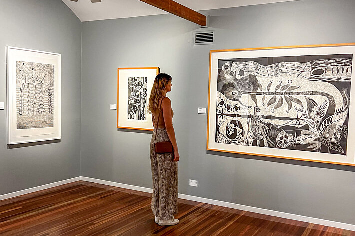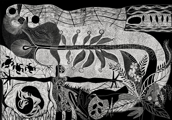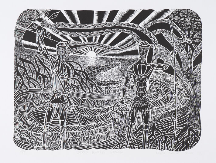 Carving Country: Indigenous Prints from the Collection celebrates the rich and unique visual culture of First Nation artists from the region, through works in the Cairns Art Gallery Collection.
