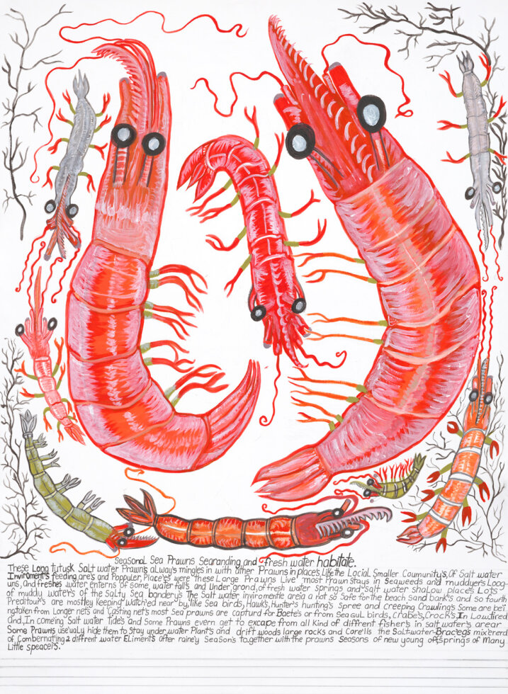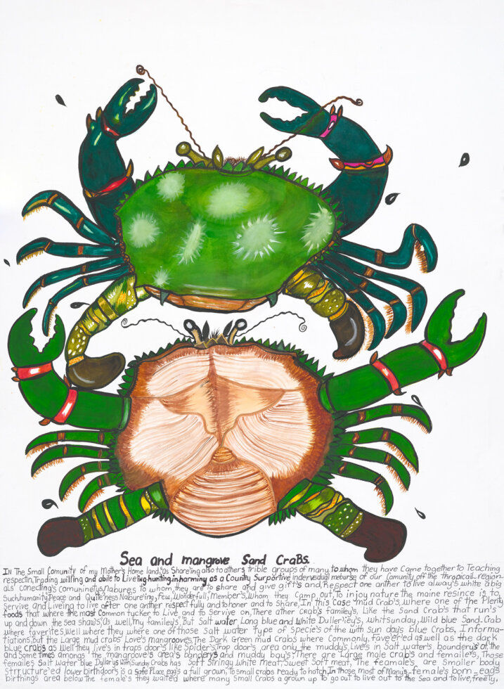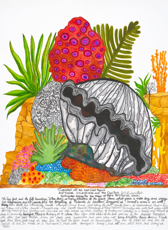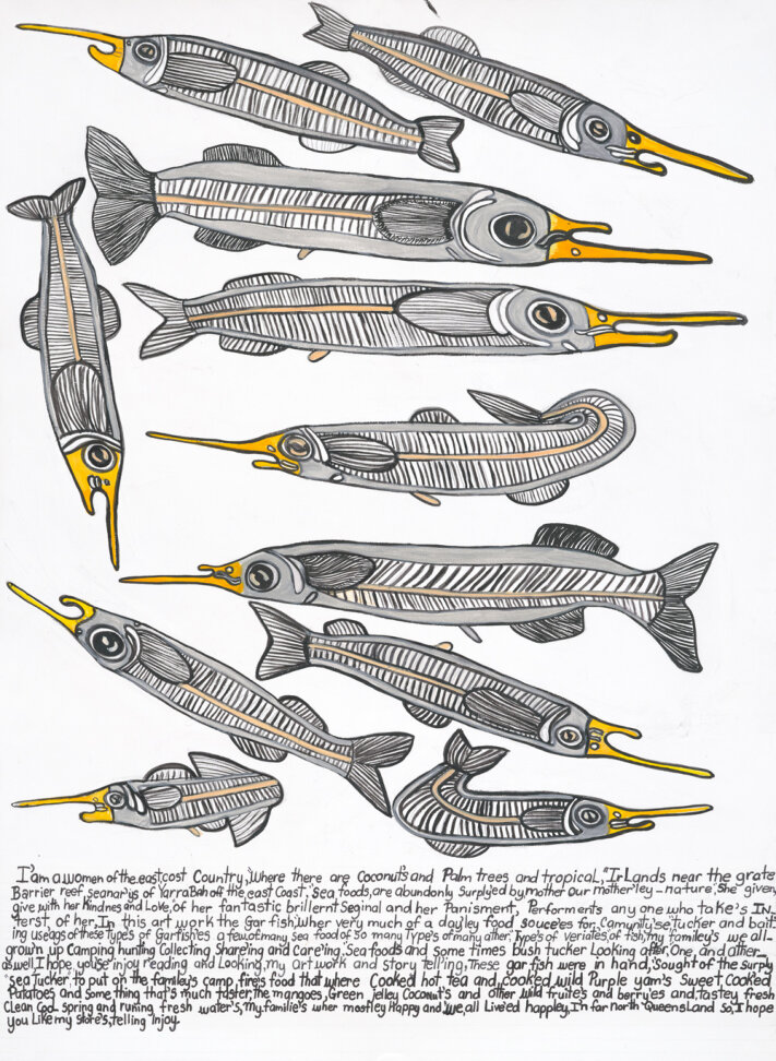 These works are now held in the Gallery Collection, and in 2023 the Gallery, supported by Double R Arts Foundation commissioned Koowootha to produce a further twelve works that expanded into series to incorporate the local marine life used for food and healing practices by the Yidinji and Wik Mungkan peoples.